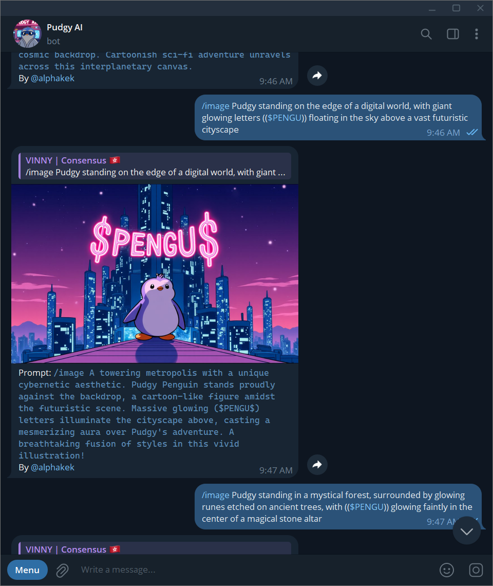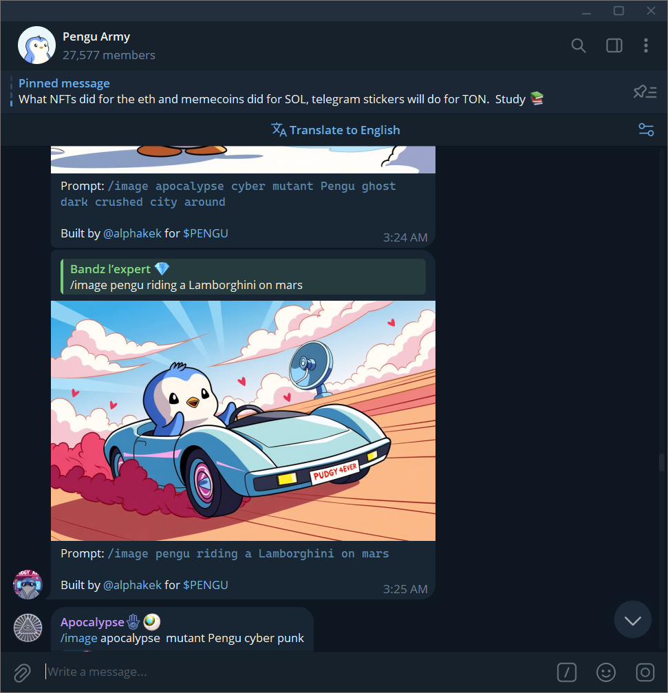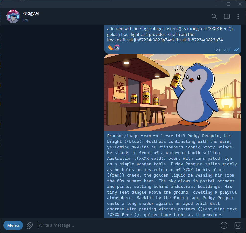 TL;DR—Our new meme generator, Pudgy AI, has generated 3,000+ Pudgy memes to date. Currently in the official Pengu Telegram group.